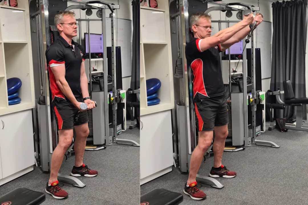 The V Grip Cable Front Raise is a variation of the front raise and an exercise used to build the muscles of the shoulders. Utilising the cable machine is useful in that it provides constant tension on the target muscle group as you move the weight through the range of motion.