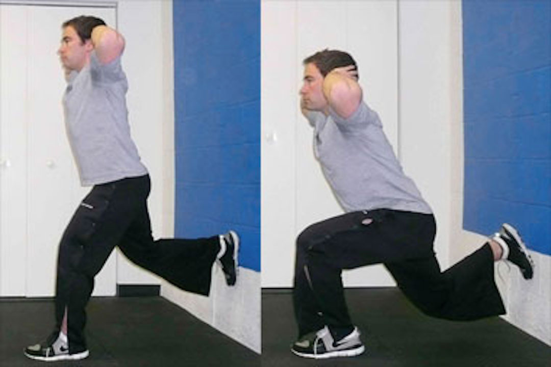 The setup is the same as with a normal Rear Foot Elevated Split Squat, except rather than resting your back leg on top of a bench, you press it hard into a wall behind you, effectively activating the glutes and hamstrings on the rear leg and placing more stress onto the posterior chain.