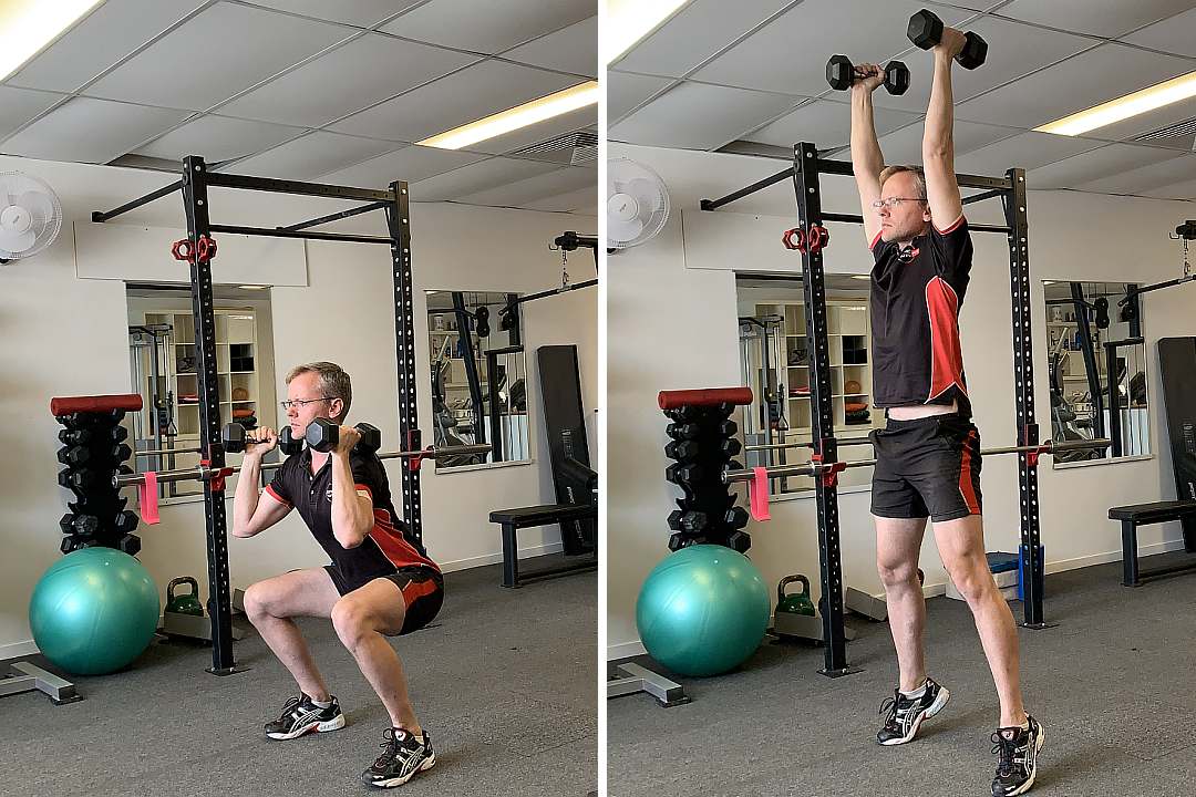 This is a great exercise to develop power through the legs and shoulders especially for sports that require extension through multiple joints.