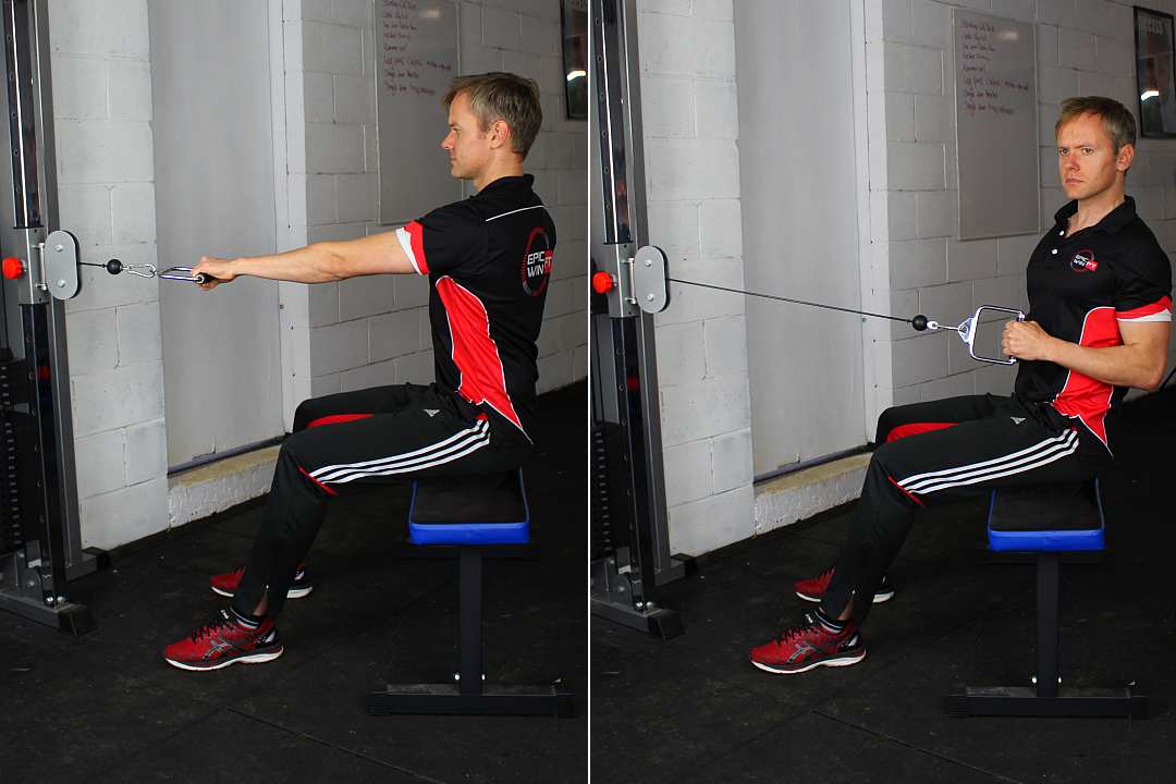 This is a great exercise to engage your lat and rhomboid muscles to help develop stability and strength in your back. No cables handy? No problem – you can always improvise and use a power band lassoed around a post or solid, unmovable structure. It’s important to remember that this exercise is about retracting your shoulder – not about getting your elbow as far behind you as you can.