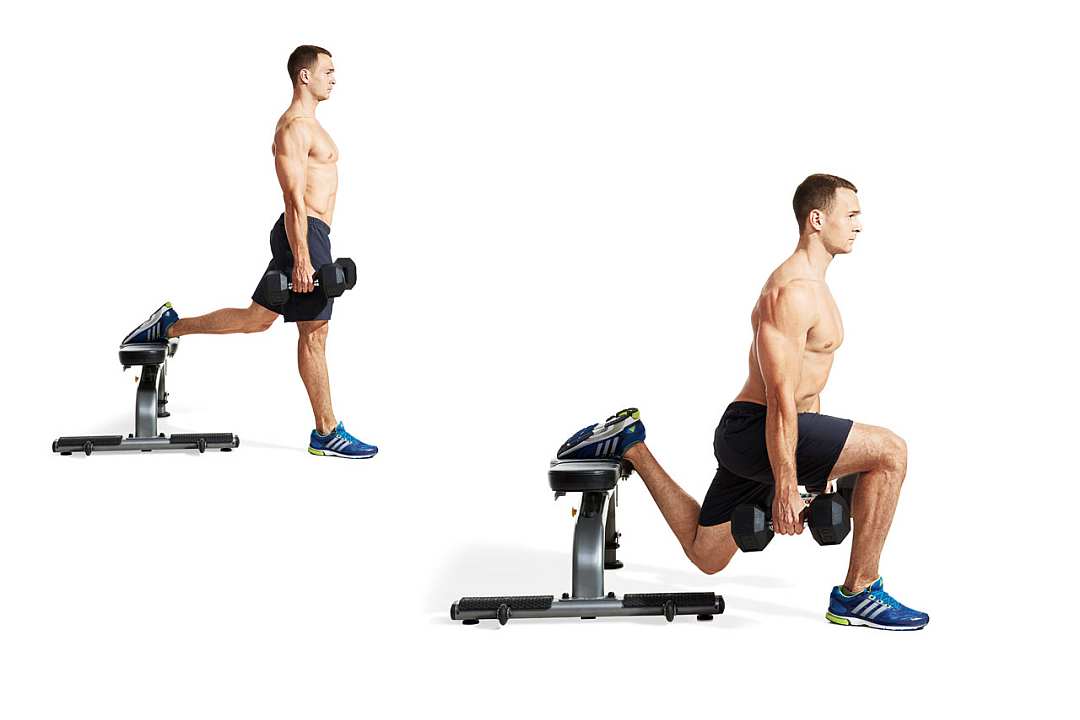 The Bulgarian split squat is a version of a single-leg squat where the back leg is elevated on a bench or a sturdy chair. As a single-leg, unilateral squat, the exercise places a greater focus on the quadriceps than other, similar lower-body compound movements.