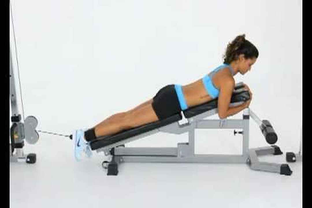 This exercise is a great alternative to a lying hamstring curl machine. Most gyms will have a cable machine and if not, there should be somewhere you can anchor a theraband/powerband to replicate the movement!