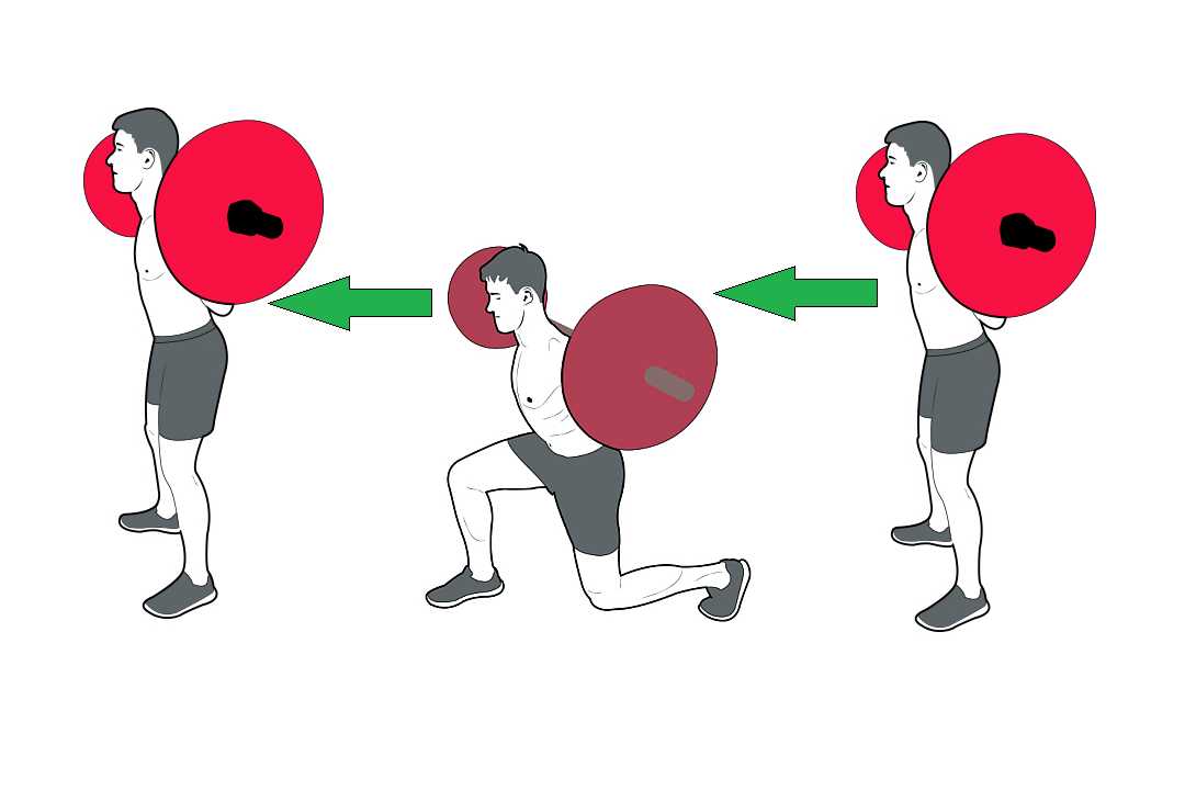 Walking Bar Bell lunges are a fantastic exercise for developing your legs and also working on your ability to stabilise your movement. There are two minor variations for this exercise – continuous and pausing. If you are doing continuous, as your step up and out of the lunge, your previously rear leg does not touch the ground until it has stepped out in front to be the forward leg. In a pausing variation, the lunger will step up and out of the lunge with the previously rear foot being brought alongside the other foot grounded where a pause will take place and then the lunge forward will take place. This pause allows for a reset or refocus for the next movement. If you get tired or feel unstable doing continuous walking lunges – you should default back to pausing after each lunge/rep.