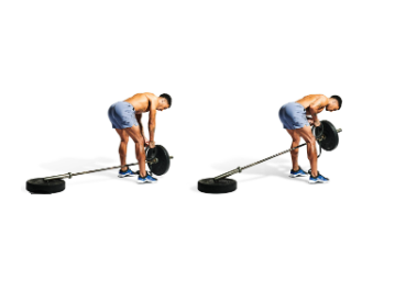 2. Deadlift the barbell to your starting position, meaning you’re at full extension.