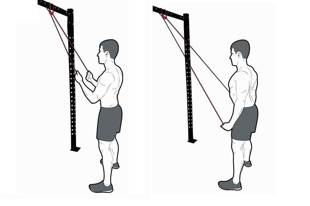 No access to cables or dumbbells but you have your trusty theraband? Triceps can be done! This is a really good alternative which works those triceps good! To increase the tension, you can stand further away from the anchor point and also work on the different angles. You can even go single armed to make it super hard!