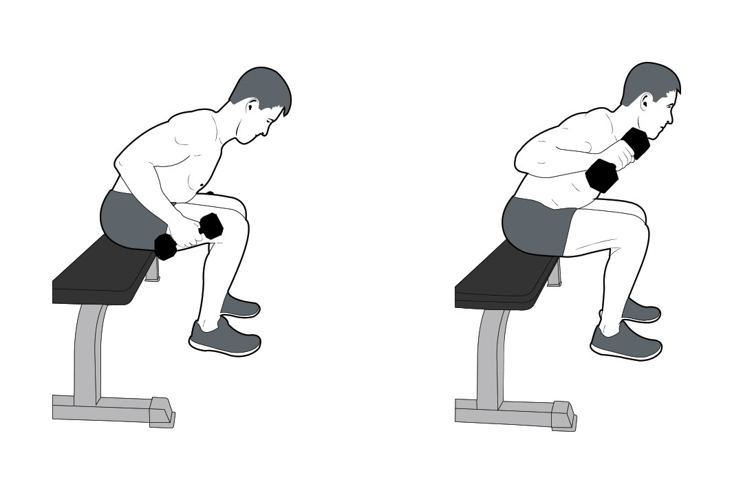 In this image, you can see that the forearms are vertical in from a side and front view. It is vital that you keep the weight stacked in this way to keep the lift about working the right muscles!