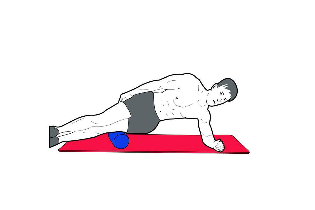 Tips for this exercise are quite simple.. use your free leg to take some of your weight. If you want to get a bit of your TFL or Tensor Fasciae Latae involved (which is attached and part of your ITB) you can slightly change the angle of your body from the side and onto your stomach but we are talking only ever so slightly.