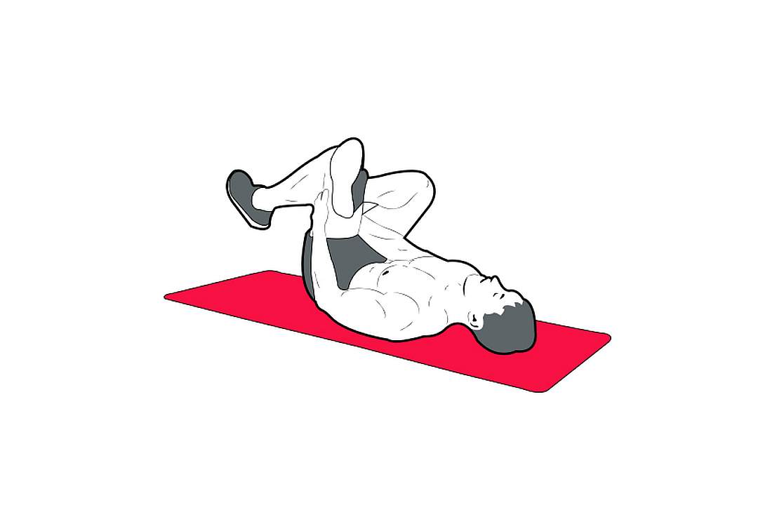 If you want to deepen the stretch, while holding onto your right knee, with the other hand push your left knee away from you!