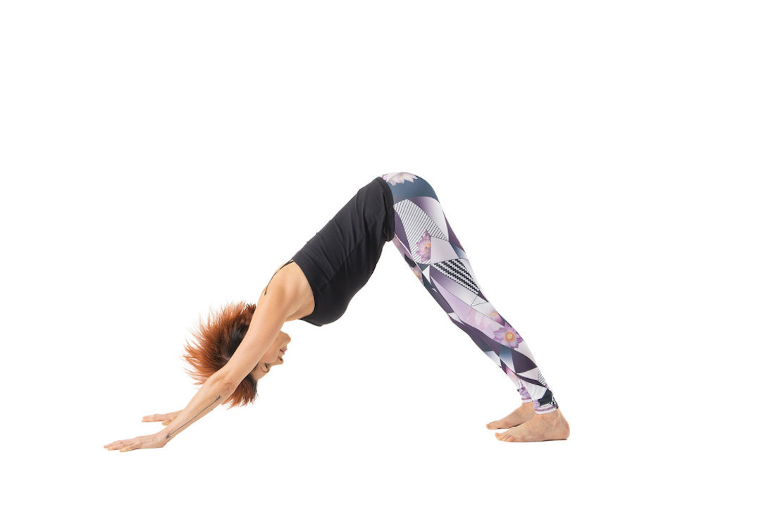 Downward Dog uses the strength of your arms and legs to fully and evenly stretch your spine. It stretches your hips, hamstrings, and calves as it strengthens your quadriceps and ankles. It opens your chest and shoulders and tones your arms and abdominals.