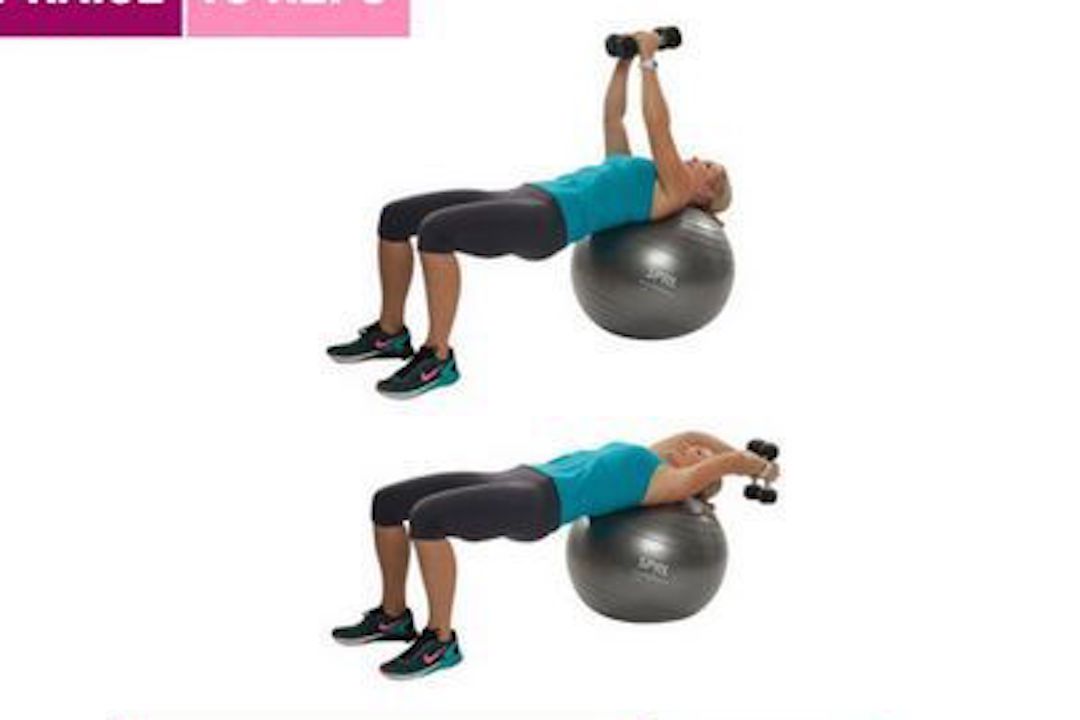 Stability Ball Overhead Lat Pull is a great way to strengthen your lats and core and challenges your stability by having you try to do the work while lying back on the stability ball.
