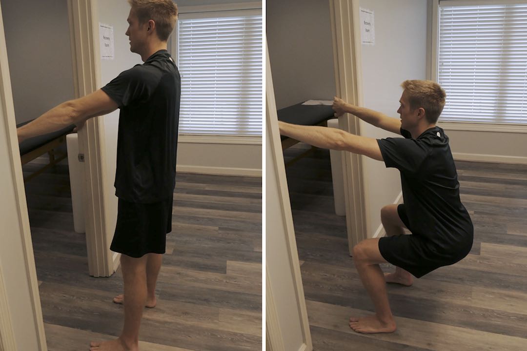 This bodyweight exercise is great to enhance range of motion by allowing you to get into a deep squat using the door frame for support!